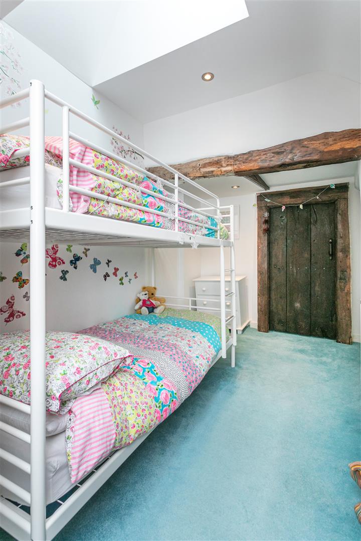 Rising to the first floor there are two double bedrooms and a third single. The principal bedroom has an ensuite bathroom with a contemporary styled suite of bath with shower over, floating wash basin and loo. The former airing cupboard now provides excellent storage. The second and third bedrooms share the shower room, with a sleek and stylish suite of large shower, floating wash basin and loo. Both the bath and shower rooms have heated towel rails and hard wearing Karndean flooring of dark wood boarded appearance. The loft is great for storage; fully boarded there is good head height, light and ladder access.